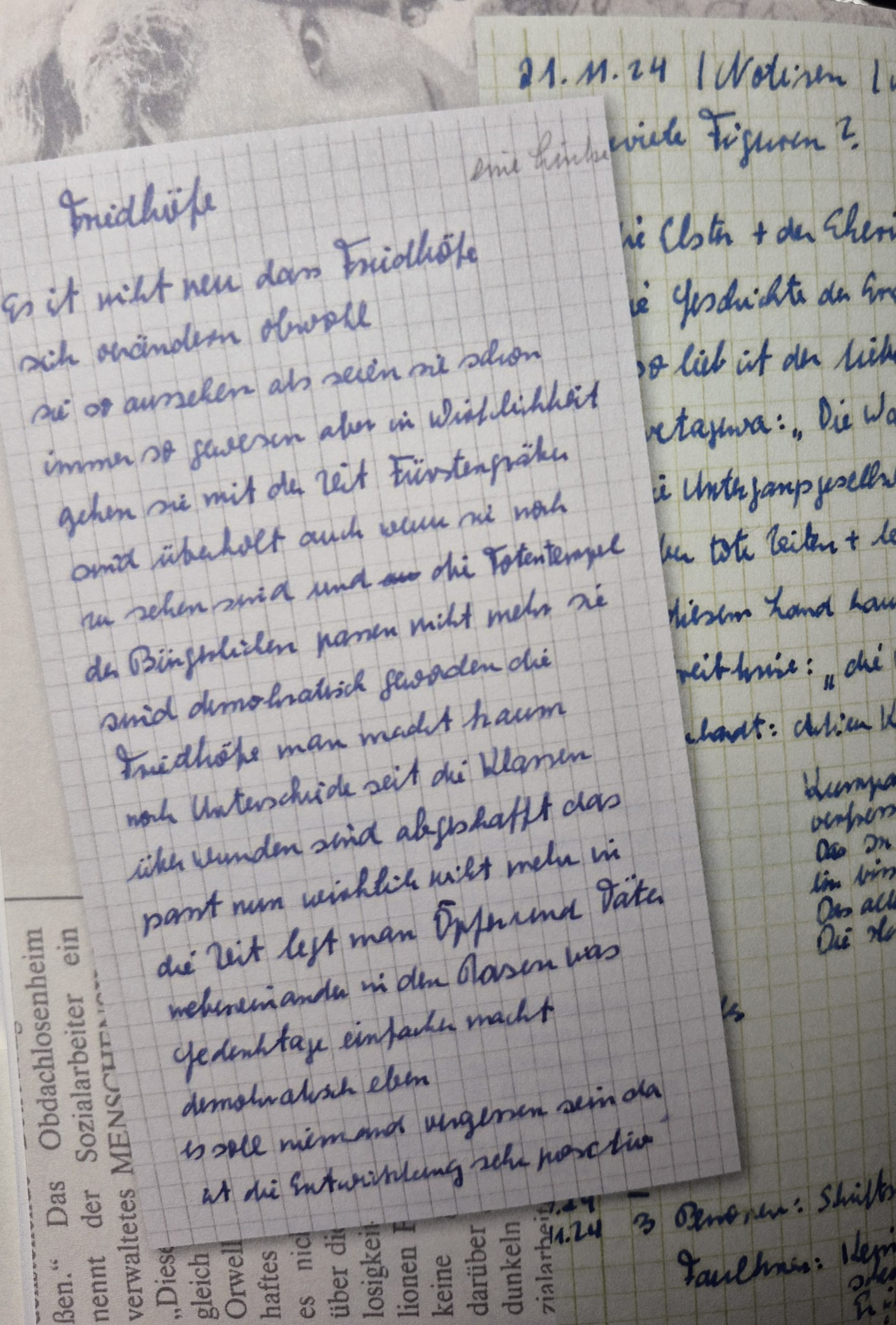 Der kleine Band enthält ihre letzte eigene Kompilation, zusammengestellt in ihren letzten Tagen. Was hier veröffentlicht wurde war in einem Hefter, teils handschriftlich (s. Bild), betitelt mit den Worten „Von den Bewohnern der Städte“.